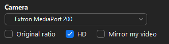 For the Video settings, make sure Extron MediaPort 200 is selected and that only HD is checked
