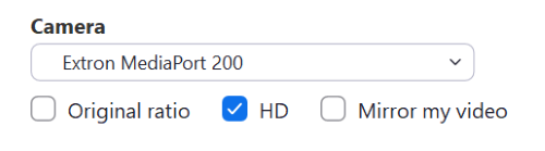 For the Video settings, make sure Extron MediaPort 200 is selected and that only HD is Checked