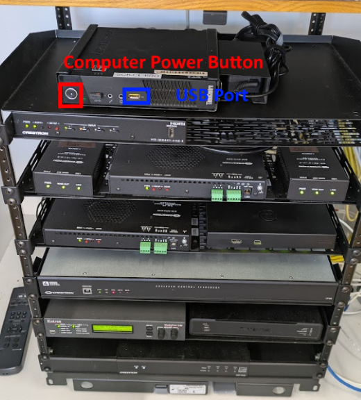 For audio on the dedicated computer, please make sure the system is set to use the Shure P300 Echo Cancelling Speakerphones for the speakers.