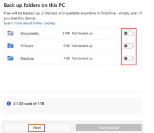 The next step is to reconfigure a few of your folders to use OneDrive instead of local storage. We recommend not doing this because it will use up your OneDrive space. For backup, we recommend using CrashPlan instead of OneDrive.