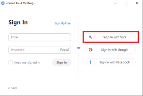 Be sure to select Sign In with SSO on the right side of the window.